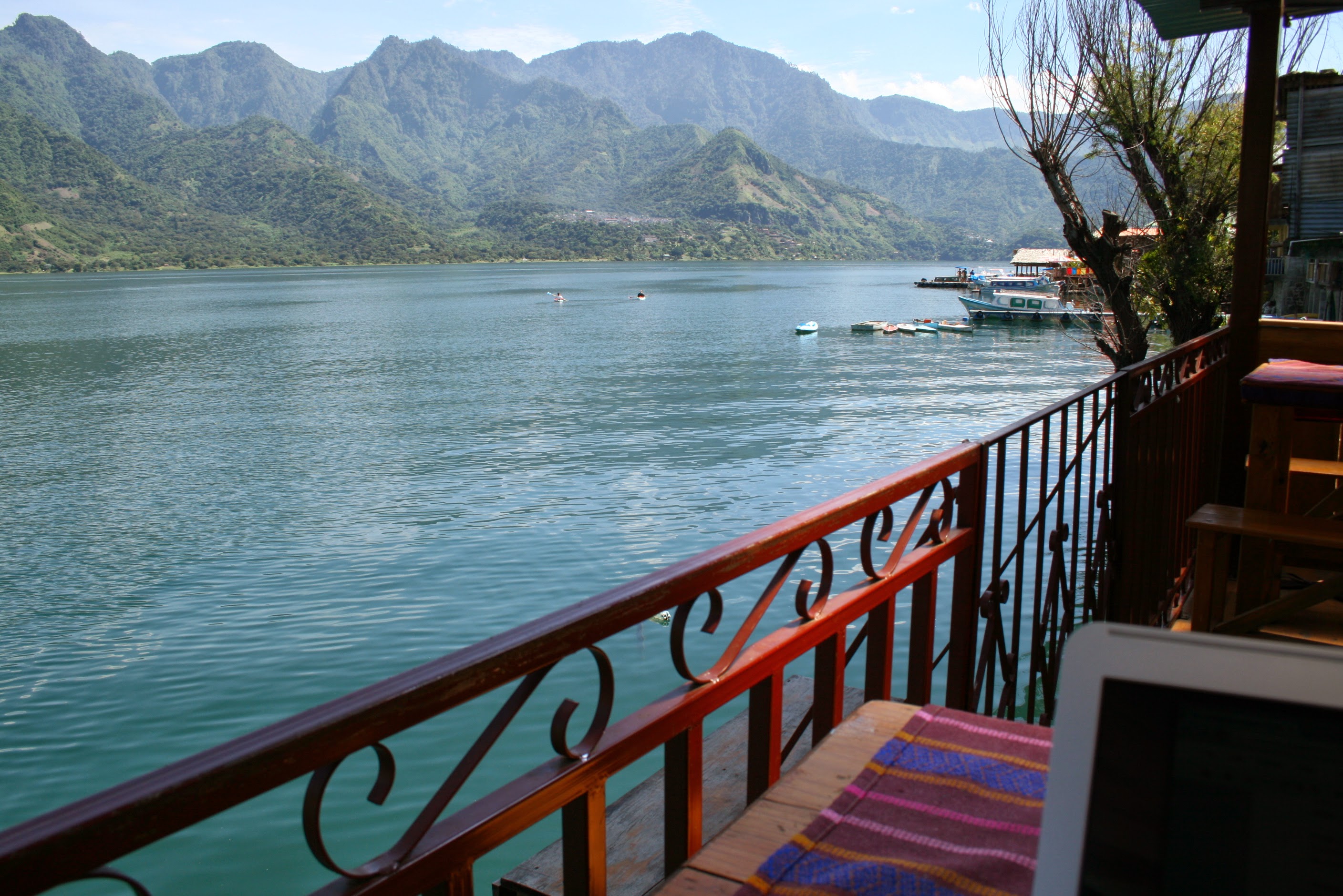 San Pedro was great. It’s distinctly a backpacker hangout but as long as you accept that, it’s easy to enjoy it there. I ended up mainly hanging out with the people I met in San Cristobal and Xela but they are a fun crowd so I can’t complain. Ring of fire happened pretty often so my liver has had better times but this was the view of the lake at breakfast – that made it worth getting up in the morning: