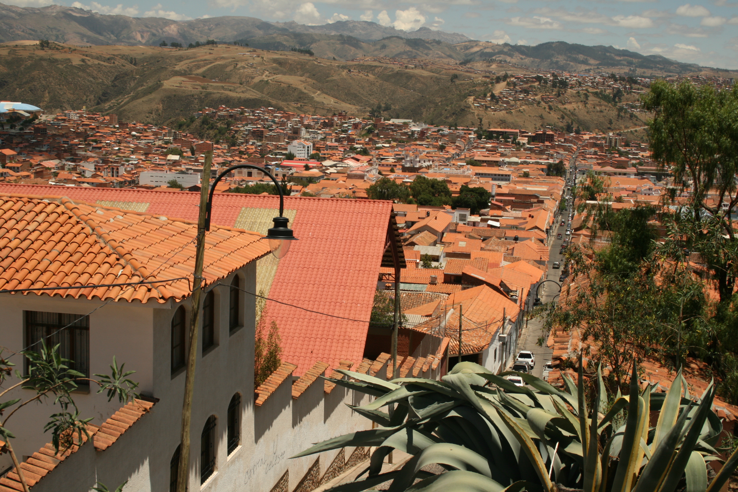 It was a bumpy ride on gravel roads through the mountains throughout the night but after 14 hours (just 5 hours delay. It could have been so much worse) we were in Sucre. Well, almost. Because the bus driver couldn’t be bothered going all the way to the bus terminal on the edge of town so dropped us off on some side street. Our bags in the hold were covered in grime and dirt and dust from the extended trip across the gravel roads so I now most definitely look like someone who’s been on the road for a while.