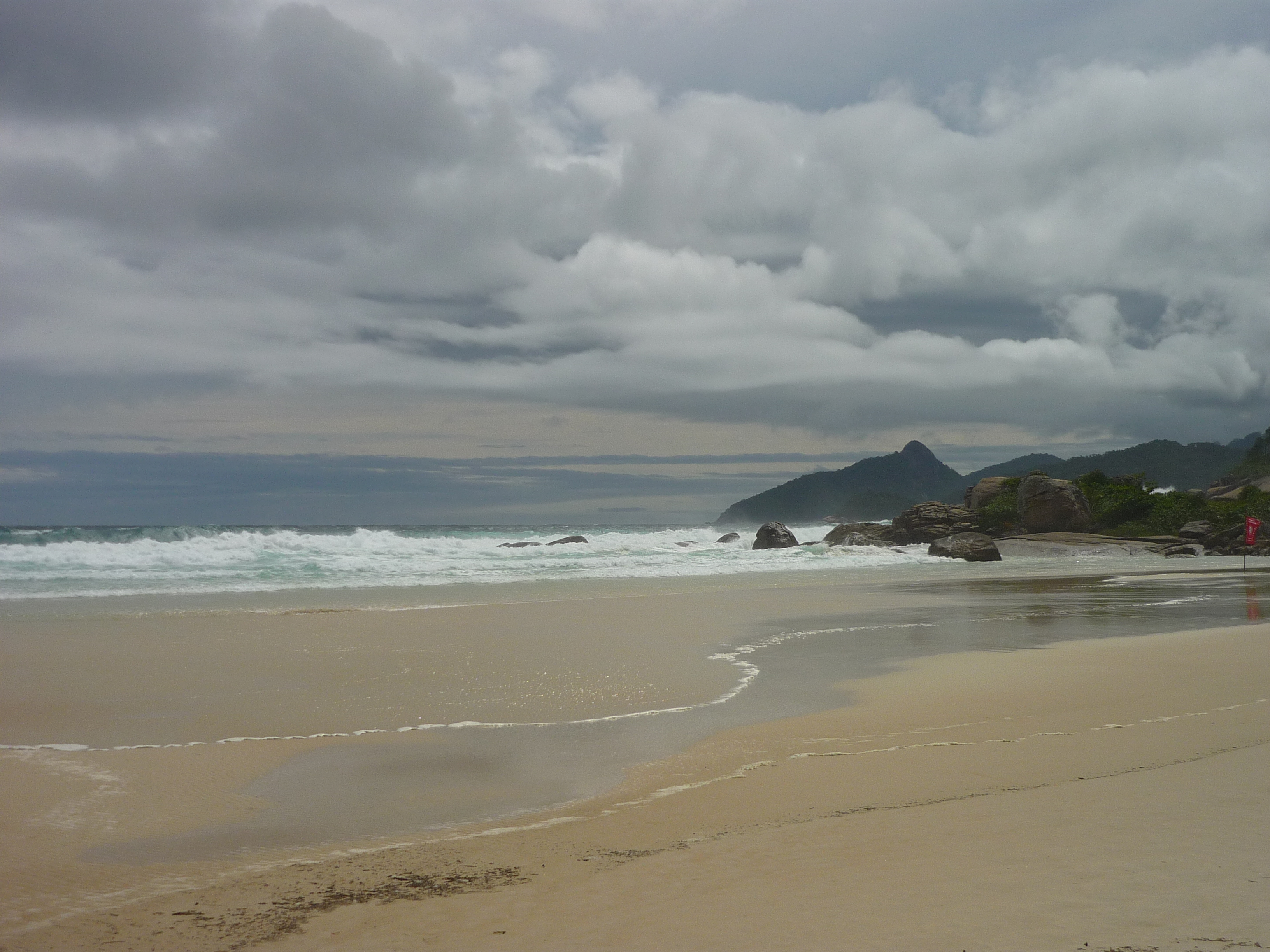 My plan for the last week and a half in Brazil (and South America) had been set in stone (or rather in hostel- and flight bookings) since early November. So the day before Christmas, I left Paraty on a far-too-early 10am bus for the 2 hour ride to Angra dos Reis. We arrived just in time to catch the noon speedboat to the island – more expensive than the schooner but that wasn’t leaving till 3 and Angra dos Reis did not look like an exciting place underneath a cloudy grey sky that was about to pour rain on us at any second.